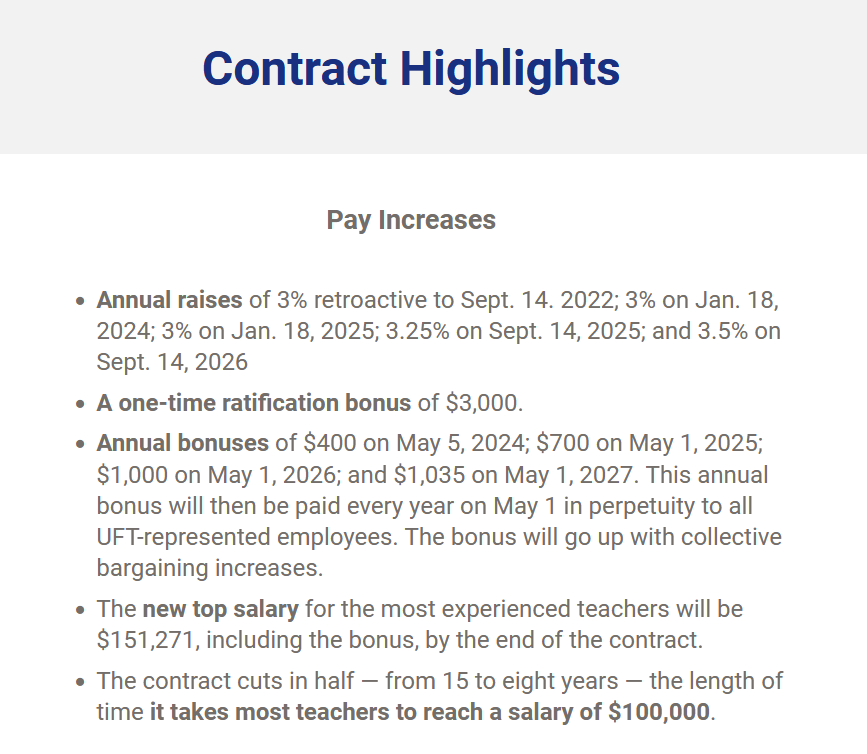 This has been a particularly contentious end of school year season. Our contract expired last year. Our union (United Federation of Teachers) has been in negotiations with the city. Rumors abounded. The mayor will refuse to negotiate a fair contract, our healthcare will change, they’ll offer 0% raises, etc.
